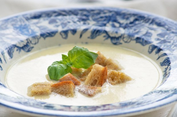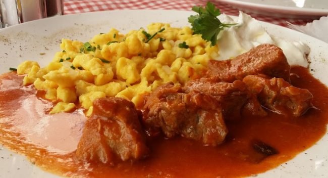 Ingrediënten: ½ l. groentebouillon 2 dl. Grüner Veltliner 2 dl. slagroom 2 eierdooiers 100 gr. witbrood 20 gr. boter 8 blaadjes Bärlauch 1 el. olie zout en peper Bereidingswijze: Verwarm de bouillon in een pan, maar laat het niet te heet worden. Giet er de Grüner Veltliner bij. Slain een apart kommetje de eierdooier los…