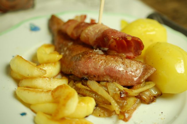 Ingrediënten: 4 kalfslevers 2 flinke uien 3 à 4 appeltjes 4 flinke plakken (ontbijt)spek 600 gr. aardappeltjes een flinke klont boter een paar eetlepels bloem peper en zout Bereidingswijze: Bak eerst het spek uit in een royale koekenpan: in repen of in stukjes, wat je wilt. Verwijder het spek, maar bewaar het uitgebakken spekvet. Je…