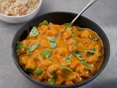 Ingrediënten: 400 gr pompoenblokjes 1 ui 1 teen knoflook 1 tomaat 1 paprika 1/2 pepertje 1 tl kerrie snufje komijn Enkele blaadjes koriander 150 ml groente bouillon 100 ml kokosmelk Bereidingswijze: Voor deze pompoencurry snijd je de ui, tomaat en paprika in stukjes en de knoflook en het pepertje fijn. Giet een scheutje olie in…