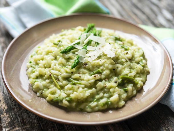 Ingrediënten: 200 gram risotto rijst 600 gram asperges 100 ml witte wijn 400 ml groentebouillon 100 gram parmezaanse kaas enkele blaadjes barlauch peper zout Bereidingswijze: De asperges schillen en de Barlauch goed wassen. De rijst met de wijn, groente bouillon en peper in een pan met dikke bodem doen en langzaam aan de kook brengen.…