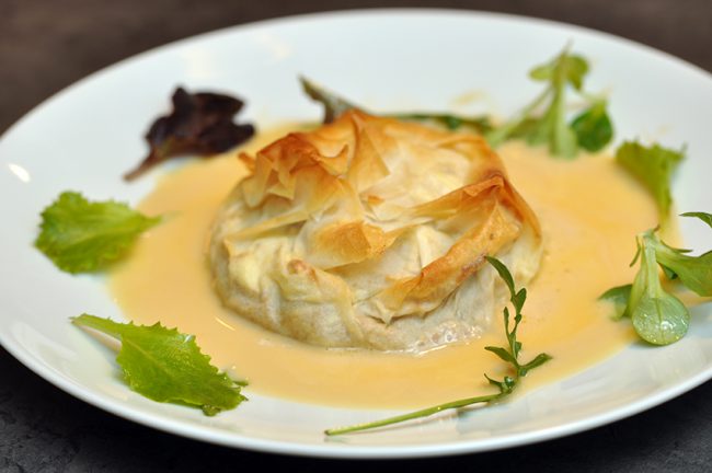 Ingredienten: 6 Forelfilets250ml kookroom2 eieren1 citroen300 gram Champignons170ml Crème fraîche4 blaadjes diepvries blader- of strudeldeeg 1 tomaat2 sjalotjes50 gram champignons125ml kookroom150ml visbouillon200ml witte wijnBoterPeper/zout Bereidingswijze: Snijd twee forelfilets in kleine stukjes. Verwerk fijngehakte filets met room, ei, zout, peper en citroensap in een keukenmachine tot een farce – alle ingrediënten moeten goed gekoeld zijn.Maak de…